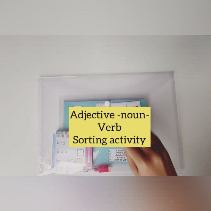 This product will help the child understand the difference between noun, verb and adjectives. The sorting mats will kids in identifying the word category and the practice cards will re enforce the same.