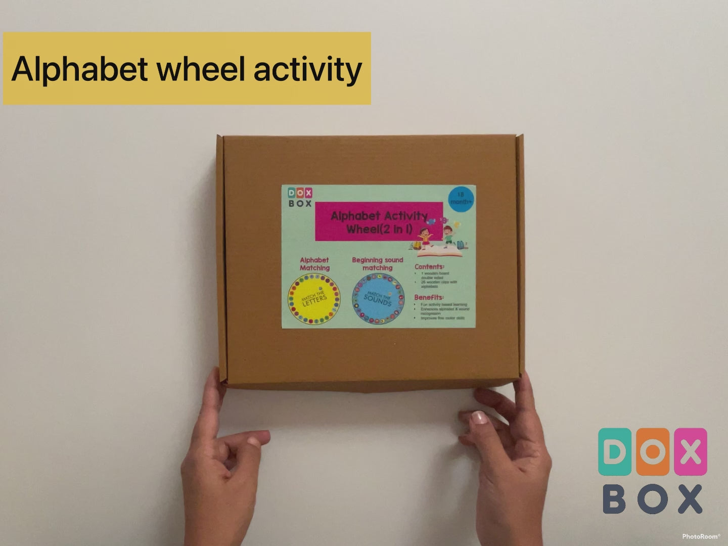 Pack Contains: 1 double sided wooden wheel, 26 wooden pegs to sort
