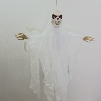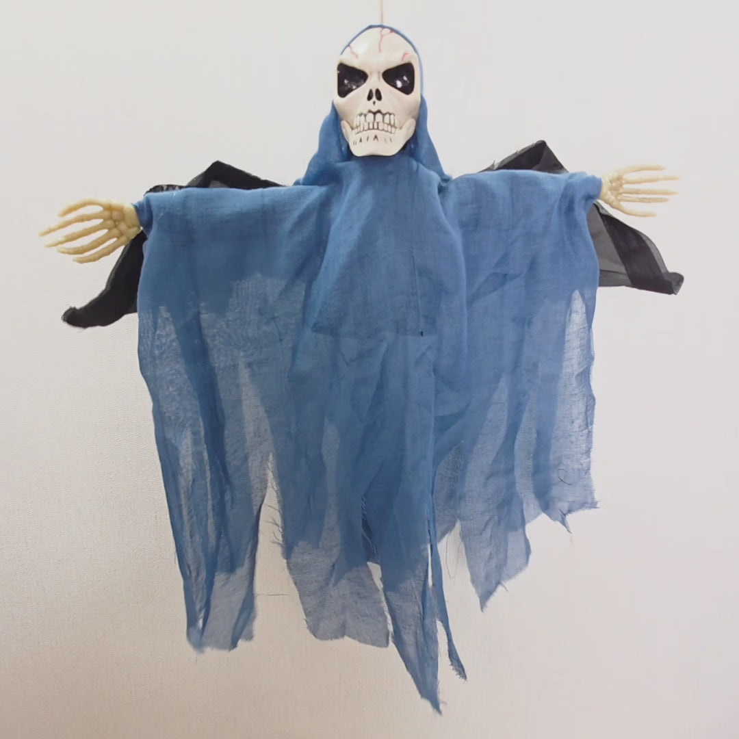 Summon eerie chills with the Animated Midnight Raven – A haunting skeletal figure that fills the night with the ghostly cries of a crow. Draped in flowing malmal cotton, its glowing red eyes and bony hands create a sinister presence that feels straight out of a nightmare. Covered in tattered cloth for a ghostly reaper look, this eerie figure spreads its outstretched wings to add an ominous floating effect that makes it appear alive in the darkness. The chilling caw… cawww… cawwwww echoes like a cursed raven circling the dead of night, making this prop unforgettable in any Halloween setup.