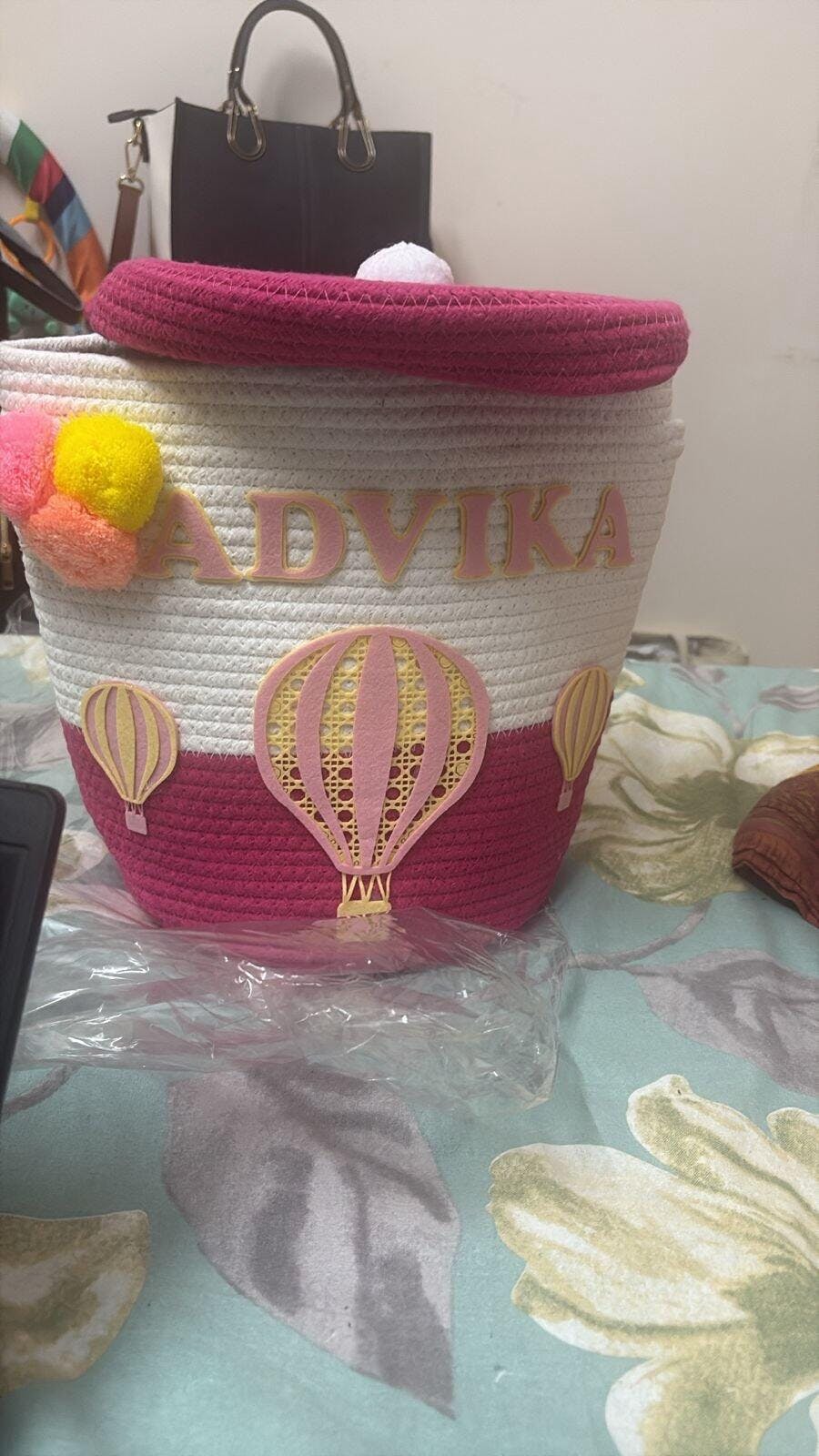 Our Basket crafted from durable jute and soft cotton, it offers both sturdiness and comfort. Perfect for carrying books, toys, or treasures, this basket is as functional as it is enchanting. Elevate your child's storage with a sprinkle of magic and practicality, and let their imagination soar among the stars. This Rosy Skies theme basket in bright hues serves as a dual purpose of both kid's room decor as well as storage made easy with two convenient sizes and comes embellished with delightful designs of Hot balloon