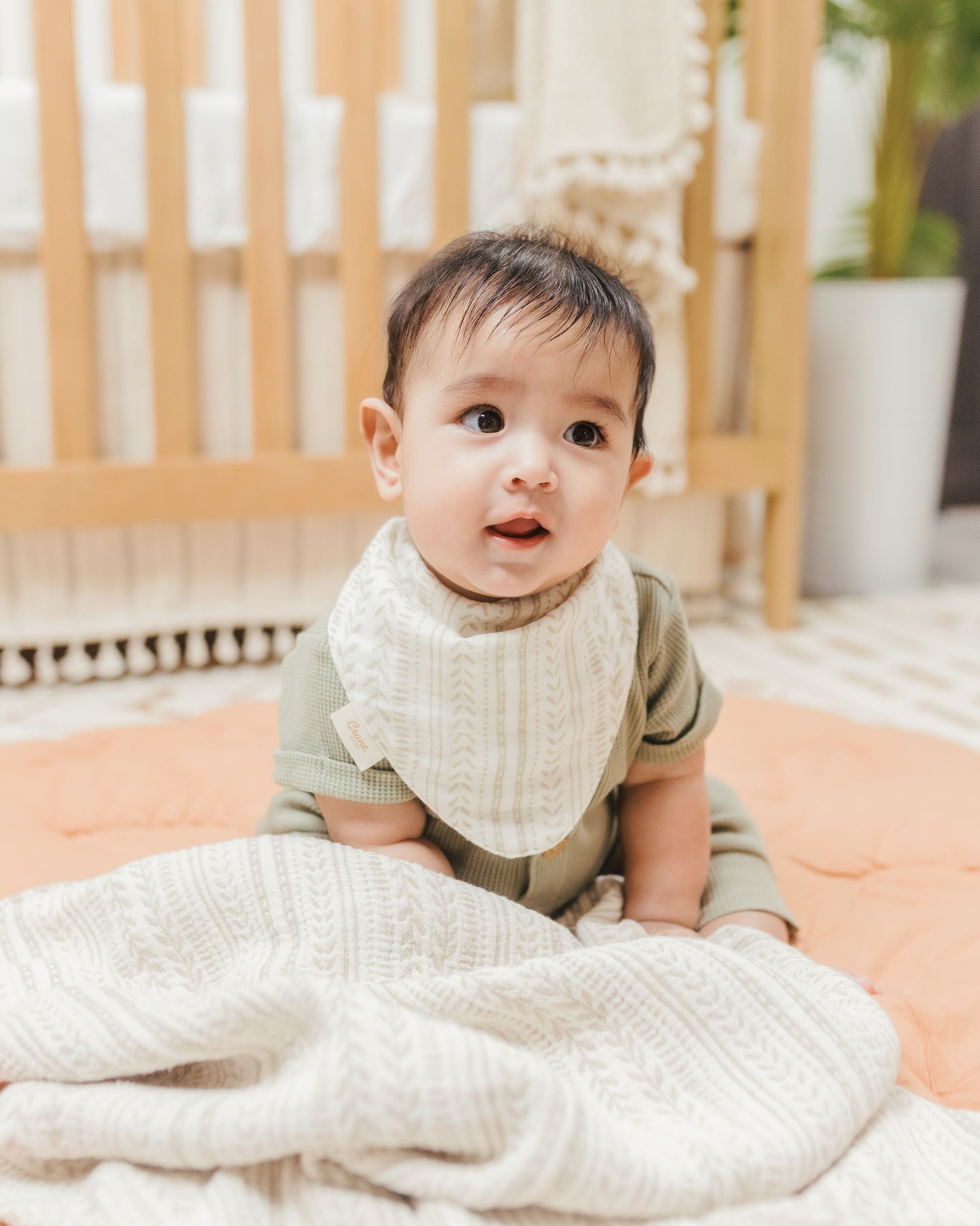The Willow Muslin Bib Set is rich in natural textures and includes three wonderfully baby bibs. Each have a distinct design with a sustainable approach to the breathable and gentle-to-the-skin fabric, making it comfortable, and snaps that allow it to be adjusted. As a result, it grows along with your baby. This bandanna-style baby bib set coordinates wonderfully with our willow burp cloths, swaddles, and baby nursery bedding sets. The collection would make a beautiful gift.