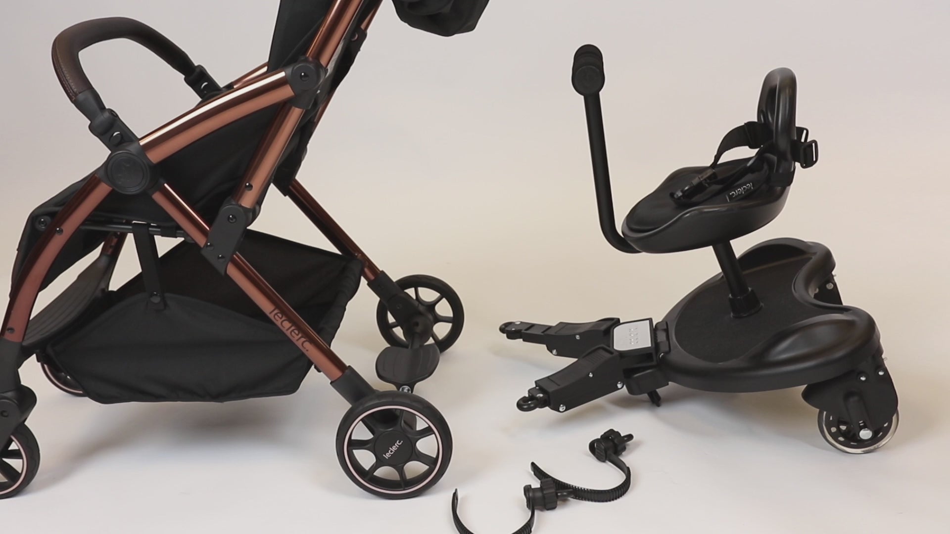 - The wheeled board fits all Leclerc strollers in a short time without tools. The included straps make the wheeled board