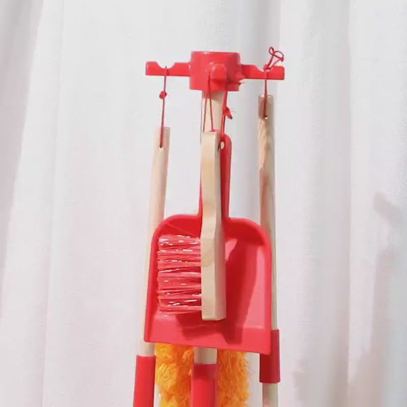Perfect for teaching kids responsibility through play, this set encourages imaginative scenarios as they mimic adults in their daily chores.1 storage stand, 1 mop, 1 duster, 1 broom, 1 brush, and 1 dustpan.